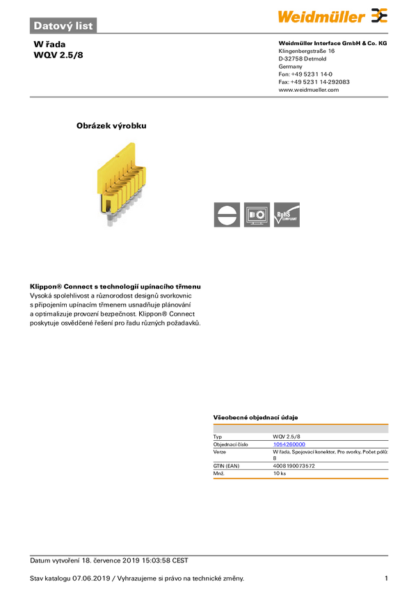 Łącznik krzyżowy Weidmüller WQV 2.5/8 1054260000, 10 szt.
