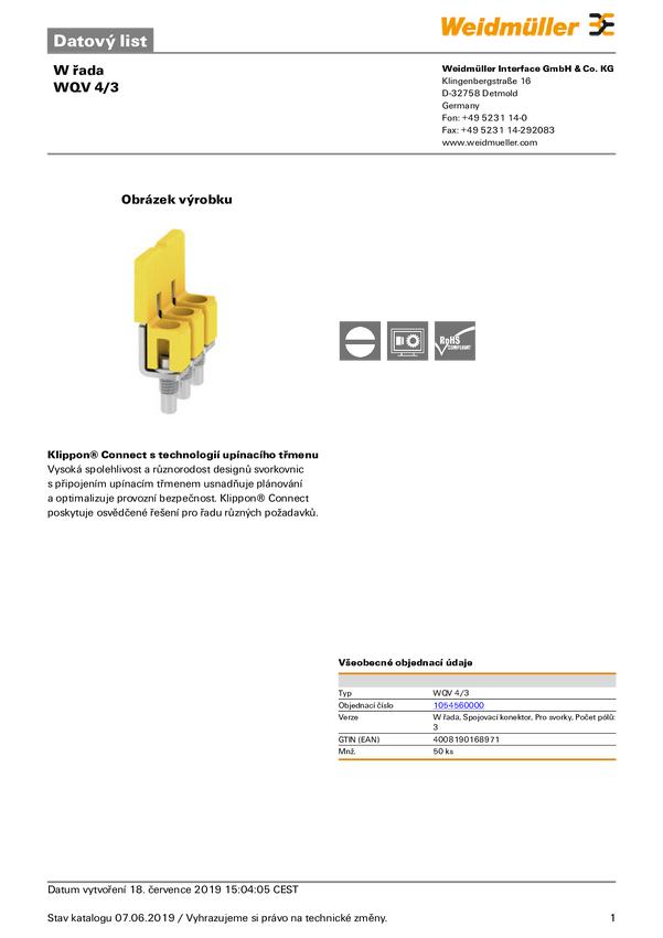 Łącznik krzyżowy Weidmüller WQV 4/3 1054560000-50, 50 szt.