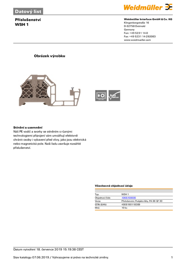 Uchwyt na szynę Weidmüller WSH 1 1068700000-10, 10 szt.