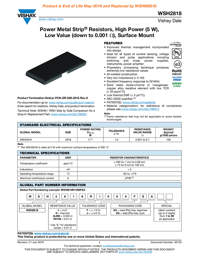 Power Metal Strip® Resistors, High Power (5 W), Low Value (down to 0.001 Ohm), Surface Mount