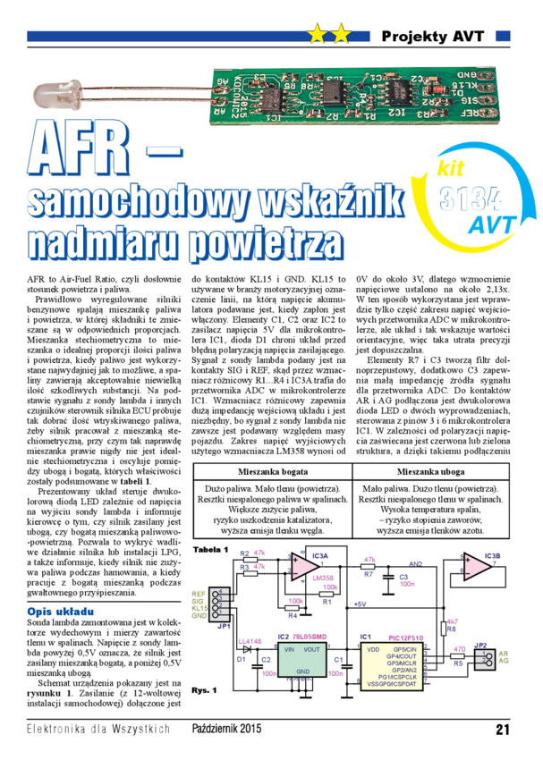 AVT3134 Samochodowy wskaźnik nadmiaru powietrza