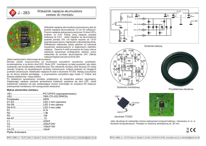 J-283 Wskaźnik napięcia akumulatora 12V/24V - zestaw do montażu