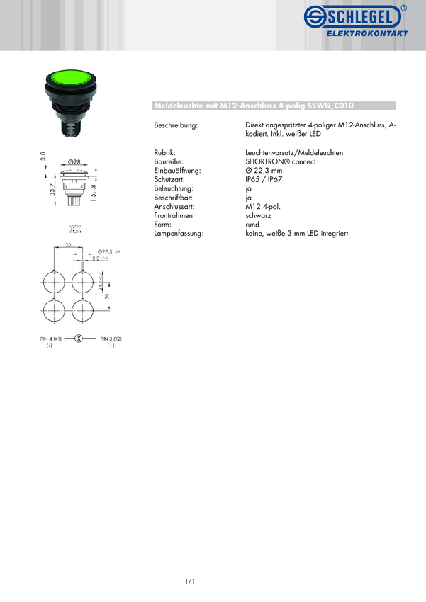 Schlegel SSWN_C010 Podświetlenie wskaźnika 30 V DC/AC 1 szt.