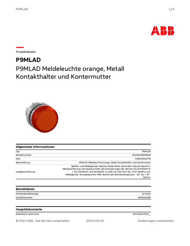 ABB P9MLAD Podświetlenie wskaźnika pomarańczowy 1 szt.