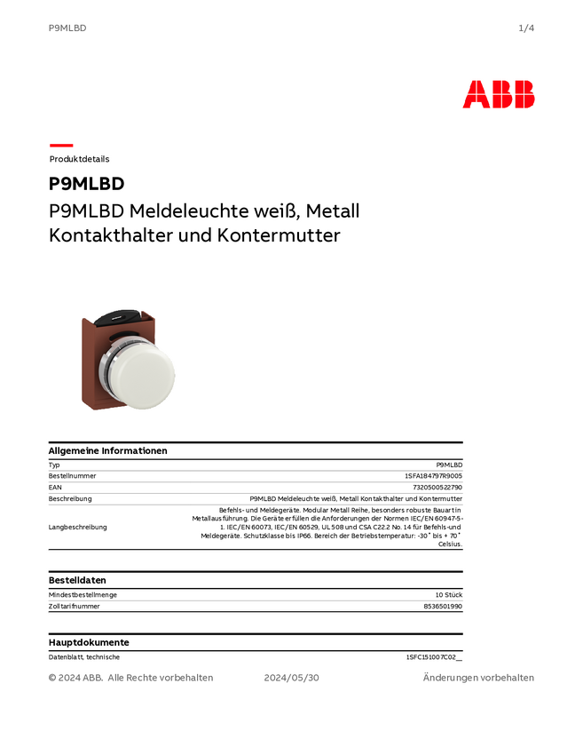 ABB P9MLBD Podświetlenie wskaźnika biały 1 szt.