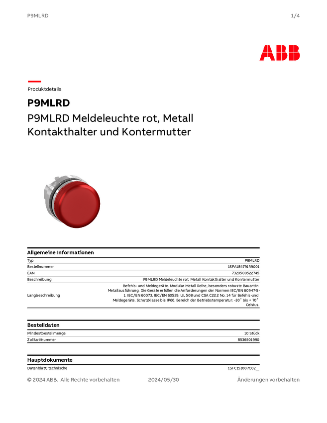 ABB P9MLRD Podświetlenie wskaźnika czerwony 1 szt.