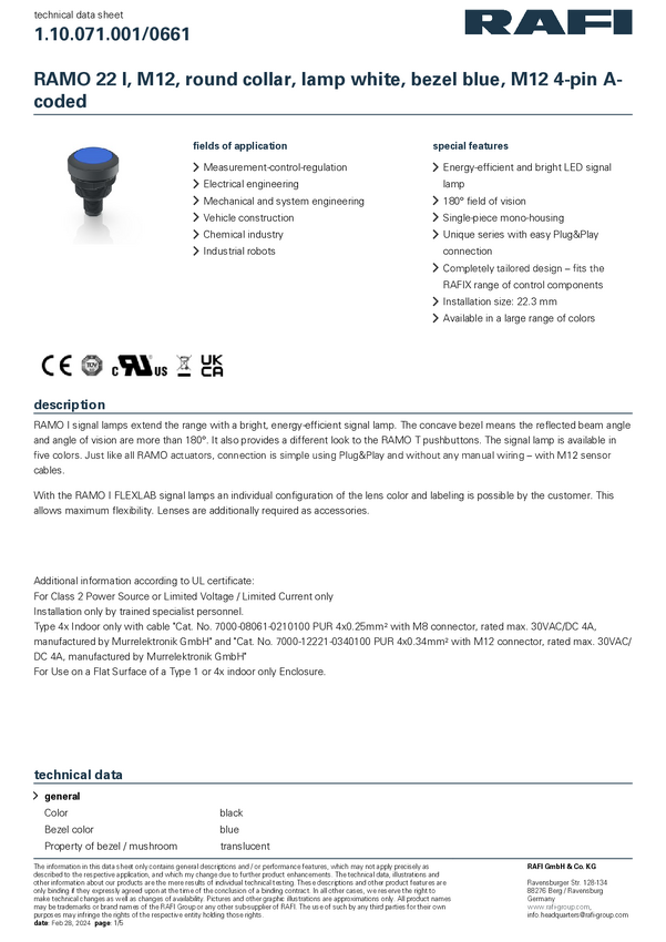 RAFI RAMO 22 Podświetlenie wskaźnika niebieski 1 szt.