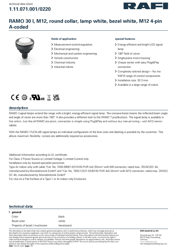 RAFI RAMO 30 Podświetlenie wskaźnika biały 1 szt.