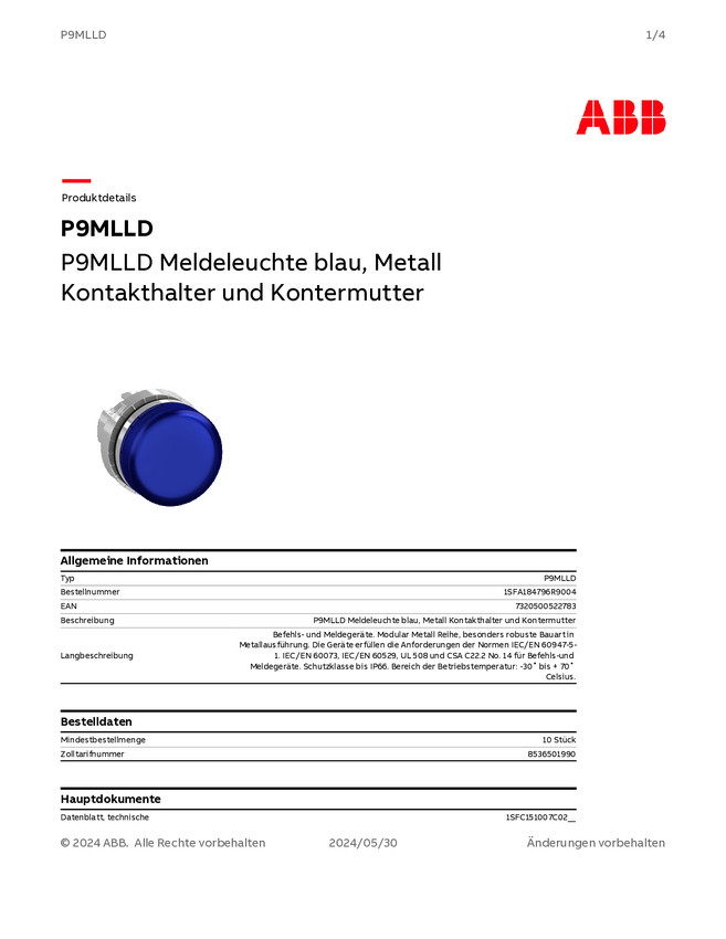 ABB P9MLLD Podświetlenie wskaźnika niebieski 1 szt.