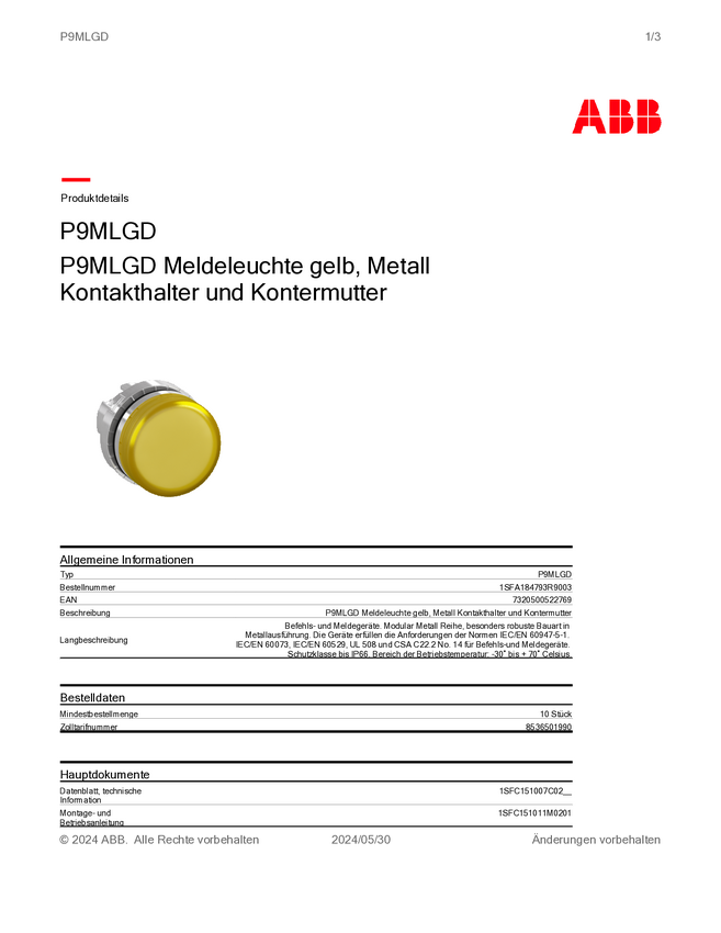 ABB P9MLGD Podświetlenie wskaźnika żółty 1 szt.