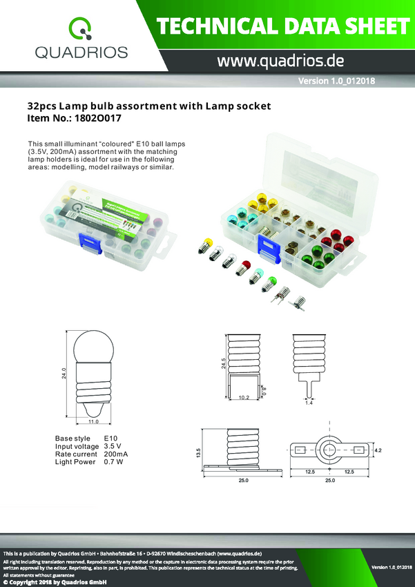 Quadrios 1802O017 Żarówka wskaźnikowa 3.5 V 0.7 W Trzonek E10 32 części