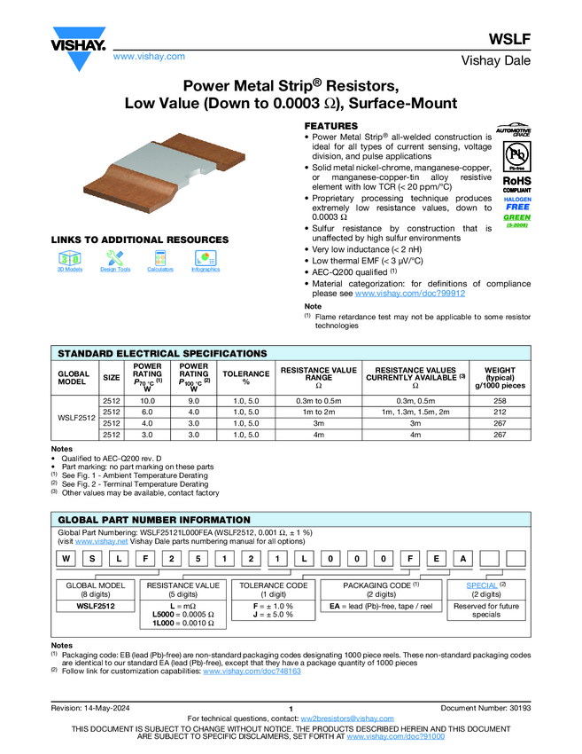 Power Metal Strip® Resistors, Low Value (Down to 0.0003 Ω), Surface-Mount