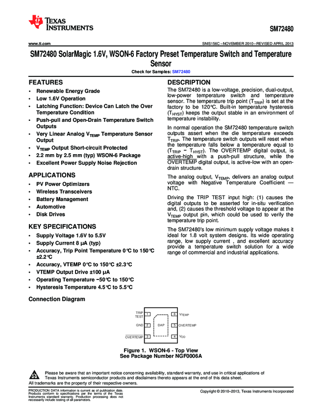 Thermostat ±2.3°C Push-Pull/Open Drain SMD 6-Pin WSON T/R