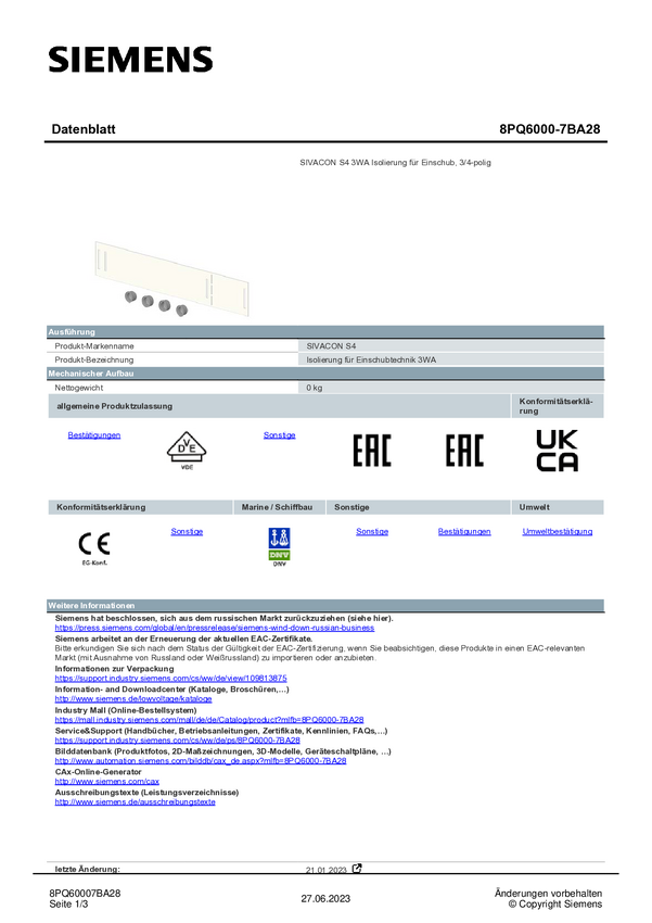 Wsparcie IS0 Siemens 8PQ6000-7BA28 1 szt.