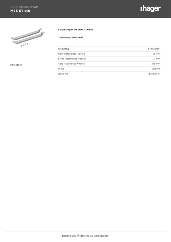 Hager MES-STR40 Wsparcie boczne metal 1 szt.