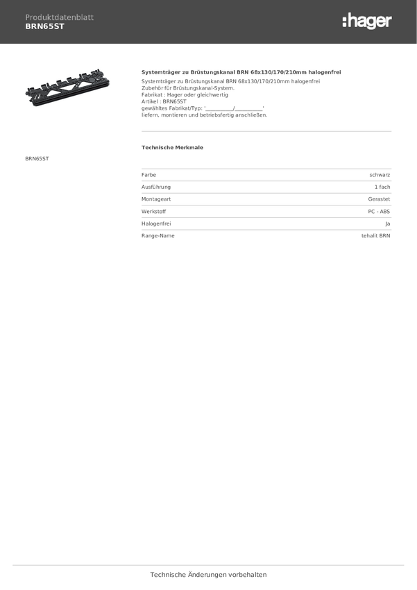 BRN65ST Akcesorium do listw Tehalit Wsparcie systemowe 220 mm 1 szt.