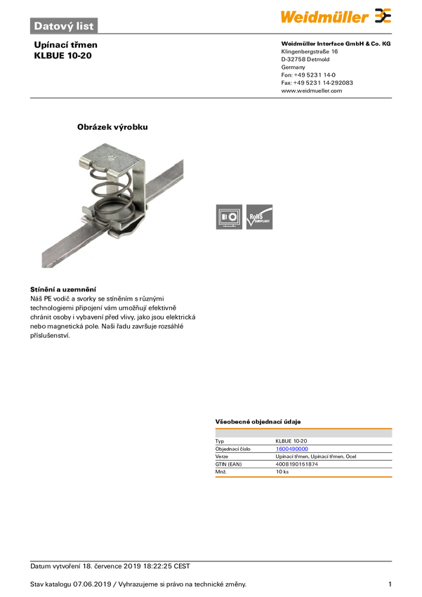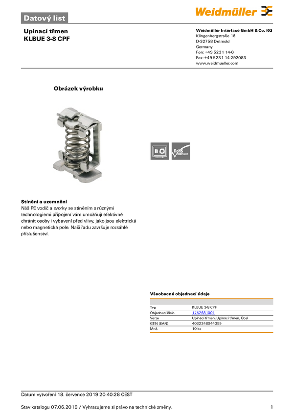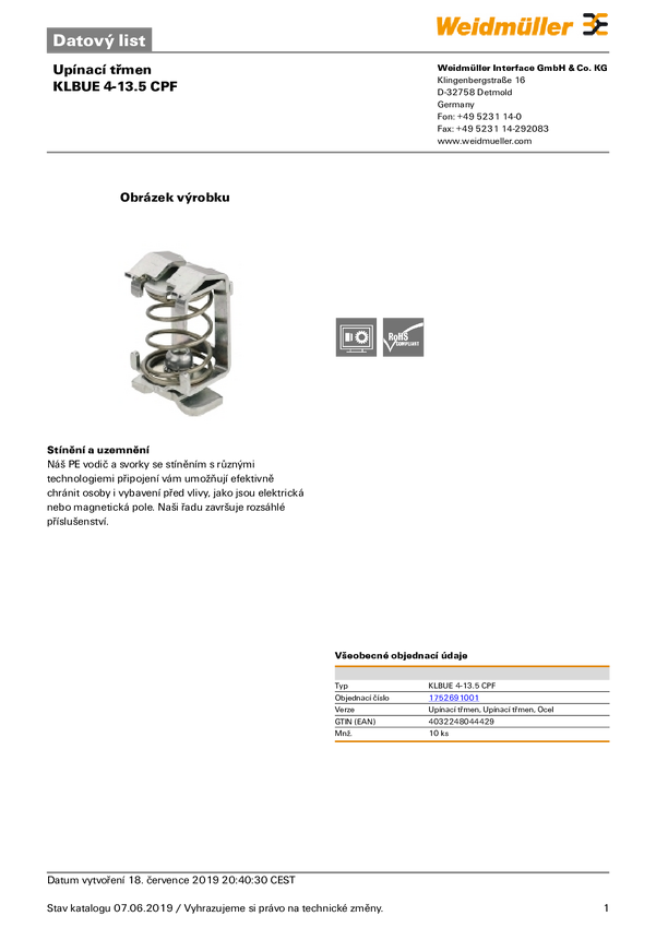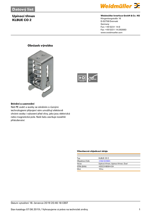 Wspornik mocujący Weidmüller KLBUE CO 1 1753311001, 10 szt.