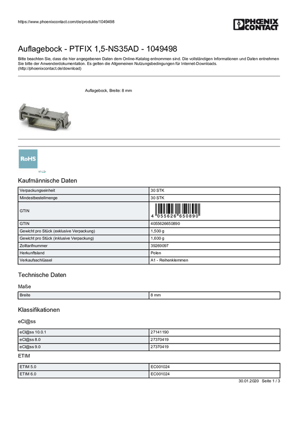 Phoenix Contact 1049498 Wspornik 30 szt.