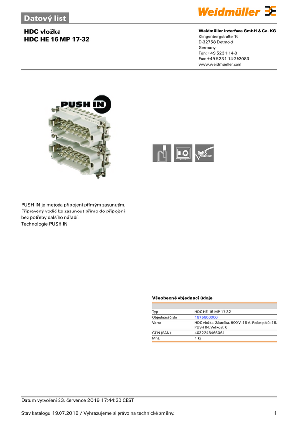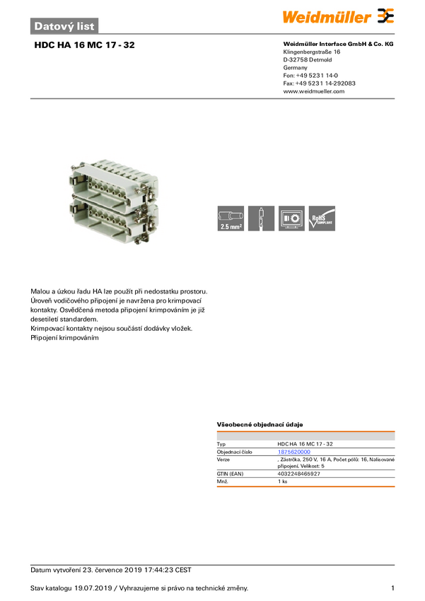 Weidmüller HDC HA 16 MC 17 - 32 1875620000 Wstawka pinowa męska 1 szt.