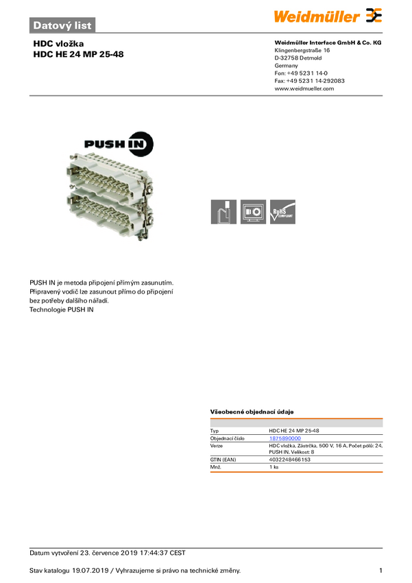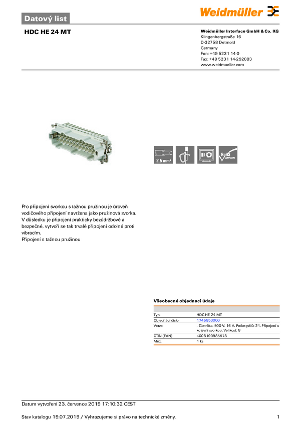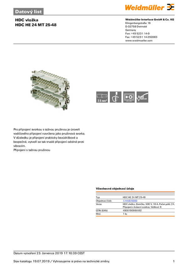 Weidmüller HDC HE 24 MT 25-48 1745870000 Wstawka pinowa męska 1 szt.