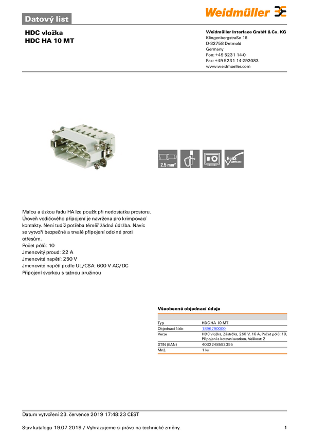 Weidmüller HDC HA 10 MT 1896790000 Wstawka pinowa męska 1 szt.