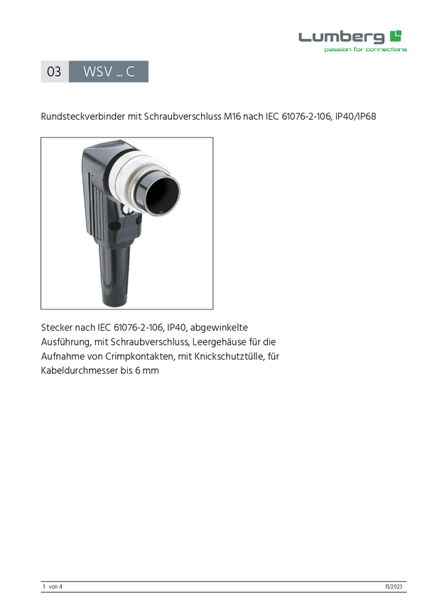 Lumberg WSV 30 C Złącze WSV 30 C, 1 szt.