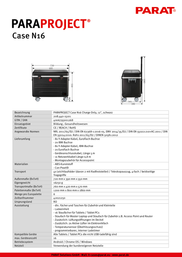 PARAPROJECT® Case N16 - wszechstronna: Walizka do ładowania i transportu wszystkich tabletów.
