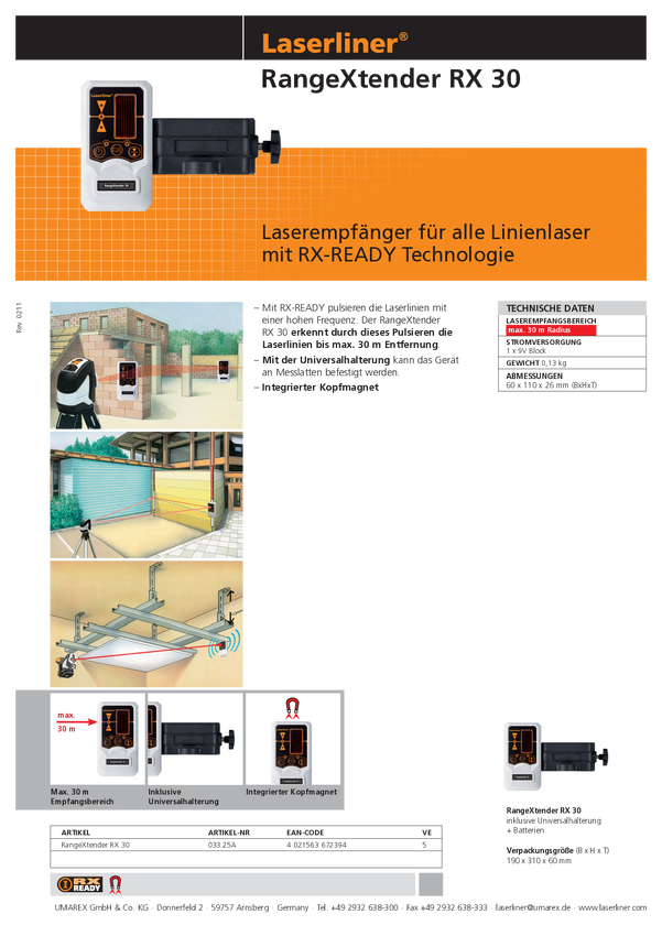 Odbiornik laserowy do wszystkich laserów liniowych z technologią RX-READY