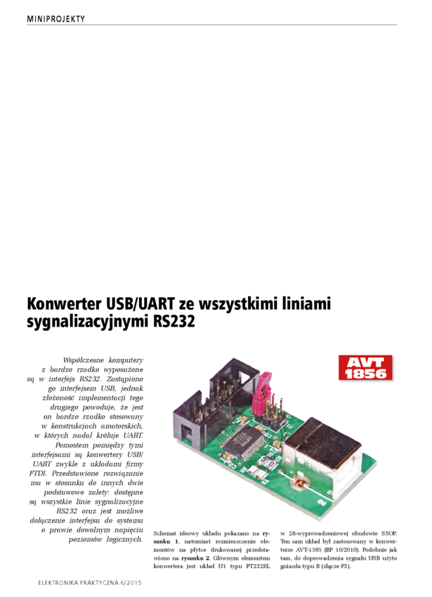 AVT1856 Konwerter USB/UART ze wszystkimi liniami sygnalizacyjnymi RS232