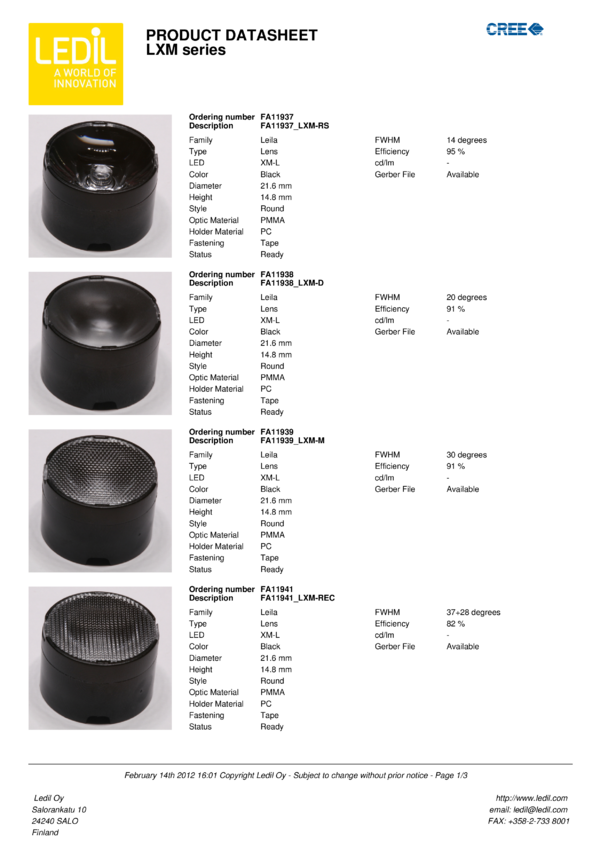 Soczewka LXP-D, Diffuser, 12&deg, do wszystkich diod LED High Power CREE serii XP, XLAMP, Ledil