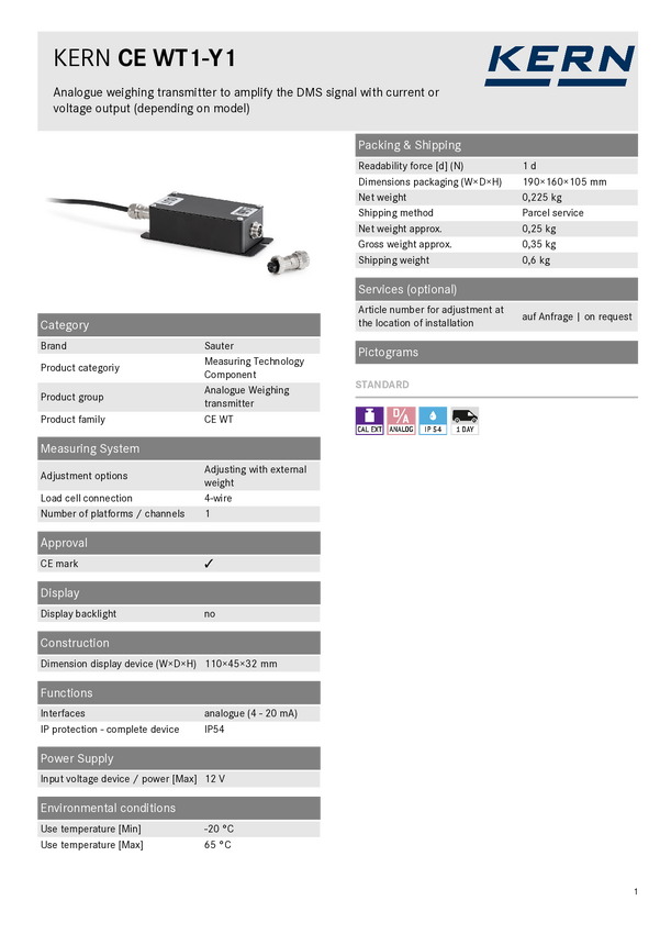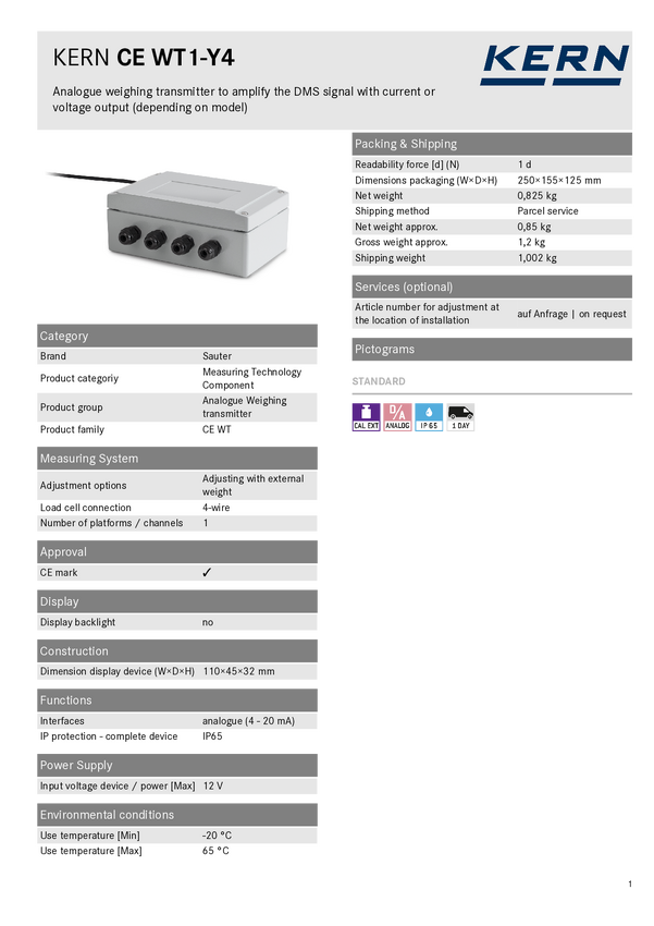 Przetwornik wagi CE WT1-Y4 Sauter CE WT1-Y4