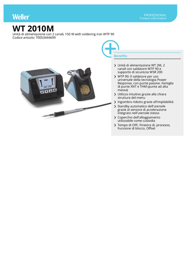 Stacja lutownicza - zestaw Weller WT2010M Soldeerstation WTP90 T0053444399 150 W 100 - 450 °C zaw. grot lutowniczy