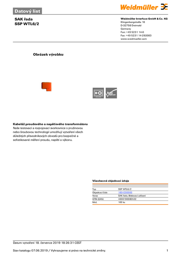 Blokada połączenia Weidmüller SSP WTL6/2 1604200000, 100 szt.