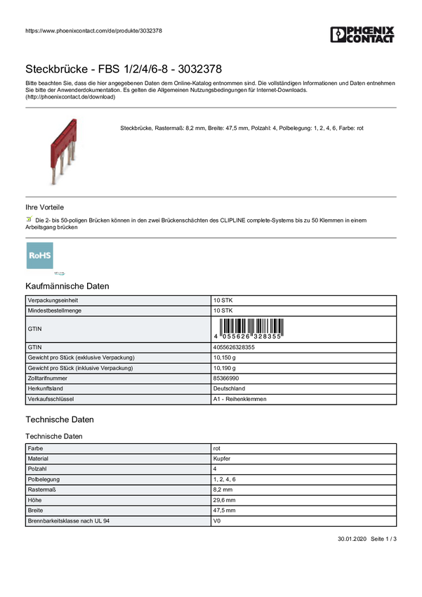 Mostek wtykany Phoenix Contact FBS 1/2/4/6-8 3032378, 10 szt.