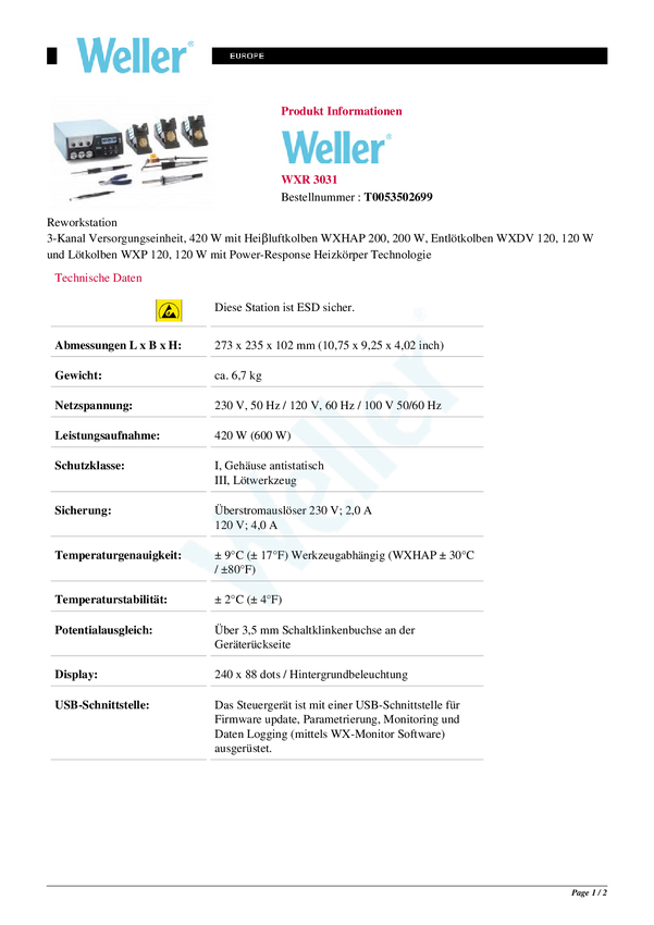 Stacja lutownicza Weller WXR 3031, +100 - +450 °C