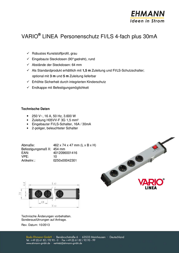 Ehmann 0250x00042301 Listwa zasilająca z wyłącznikiem 4 x szary złącze bezpieczne 1 szt.