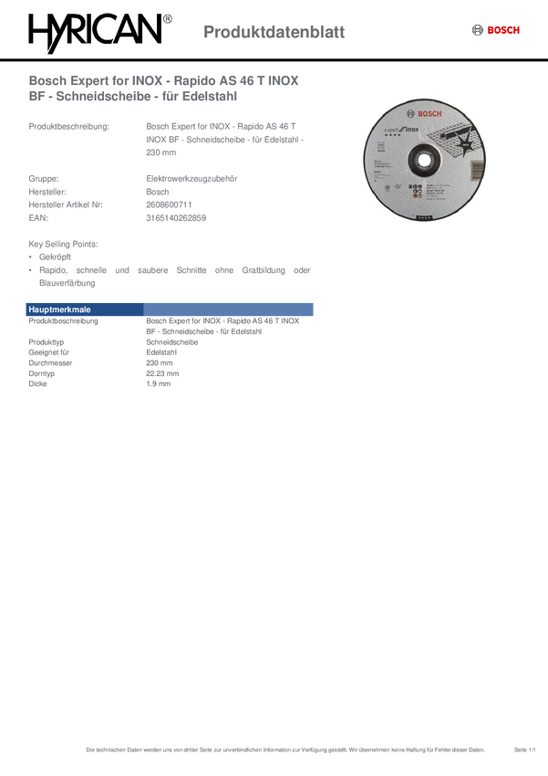 Tarcza tnąca wygięta Bosch Accessories 2608600711 2608600711 230 mm 1 szt.