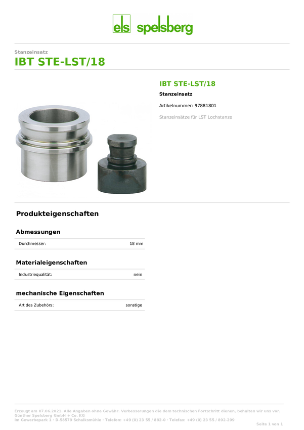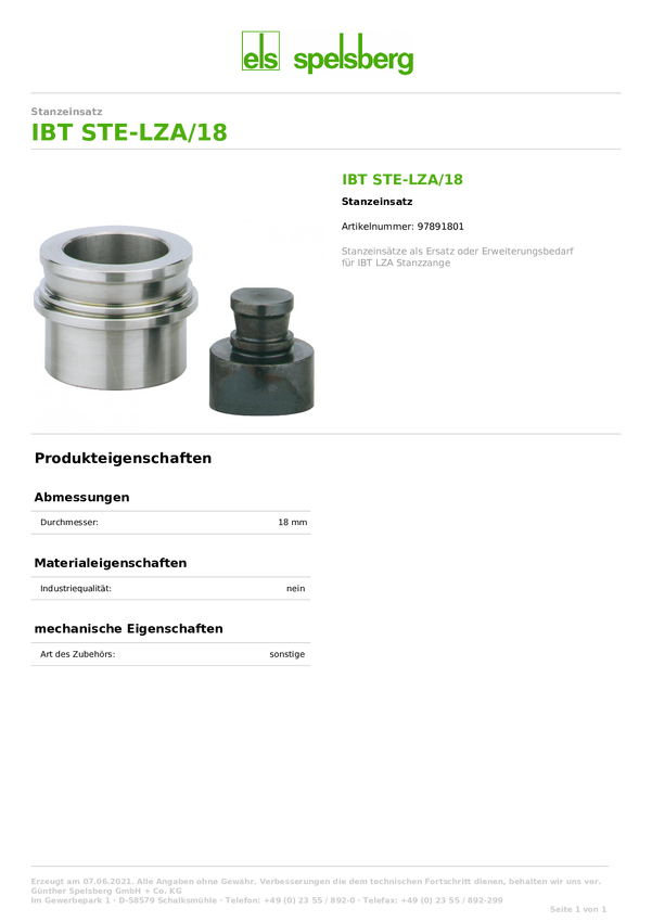 Wykrojnik Spelsberg 97891801 1 szt.