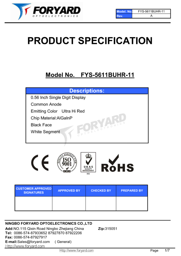 Wyświetlacz LED, , 1-cyfra, 0.56" (14.2mm), wspólna anoda, czarne tło, dyfuzyjny, statyczny, 12.6x19mm, wyprowadzenia PIN typu E4, Foryard