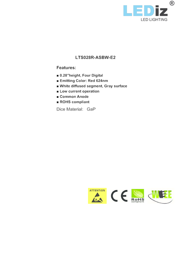 Wyświetlacz LED, , 1-cyfra, 0.28" (7.0mm), wspólna katoda, czarne tło, dyfuzyjny, statyczny, 7.4x10mm, wyprowadzenia PIN typu E2, Foryard