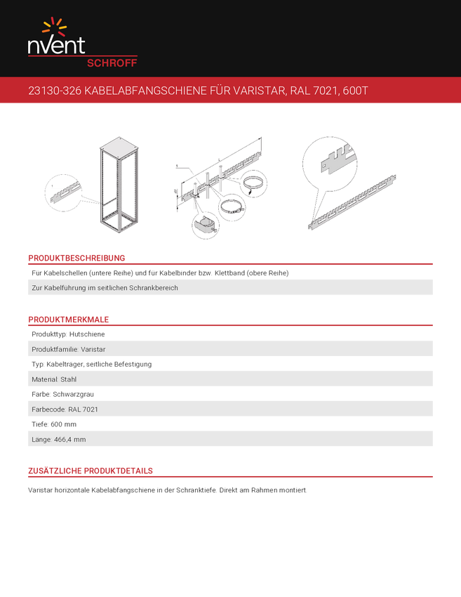 Wypustki kablowe nVent SCHROFF 23130326 23130326, 1 szt.
