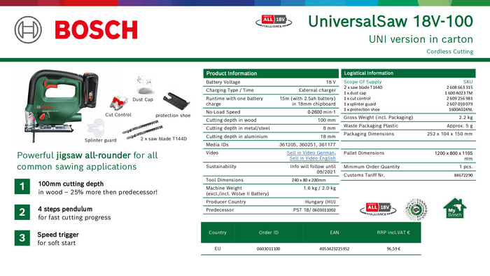 Bosch Home and Garden UniversalSaw 18-100 Wyrzynarka akumulatorowa 0603011100 bez akumulatora 18 V 2.5 Ah