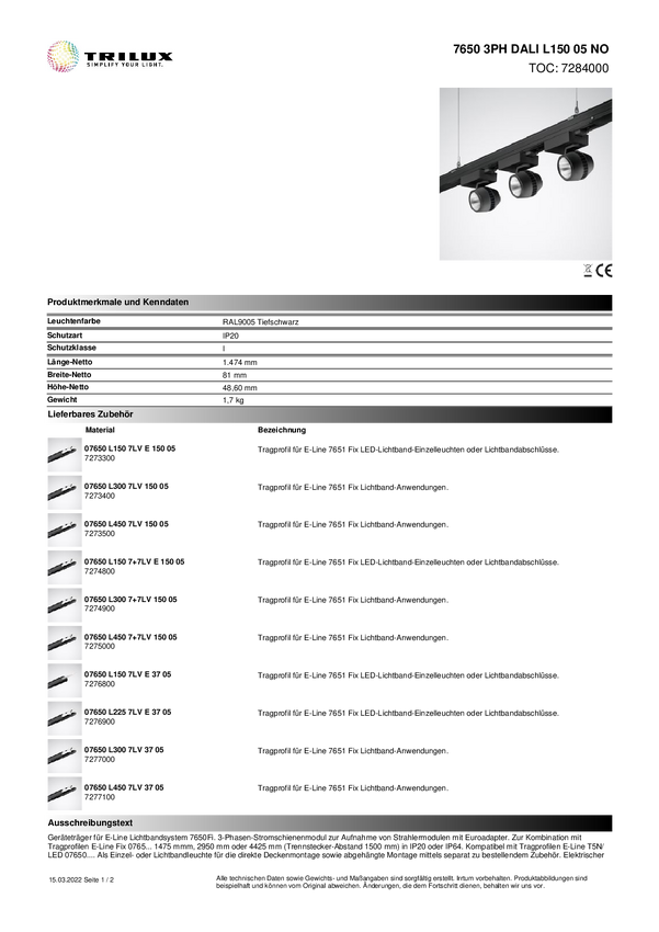 Trilux 7284000 7650 3PHDALI#7284000 Element systemu szynowego wysokonapięciowego czarny