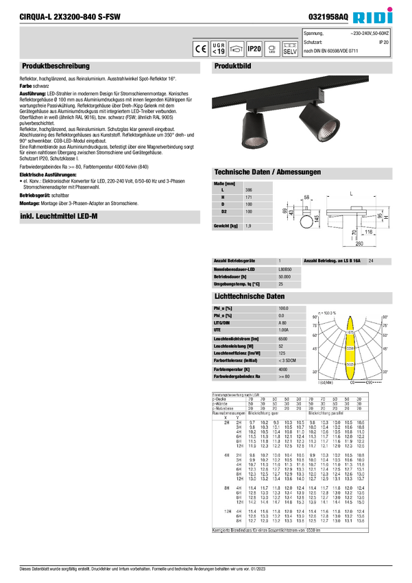Lampa do systemu szynowego, wysokonapięciowego RIDI 0321960AQ 0321960AQ LED czarny