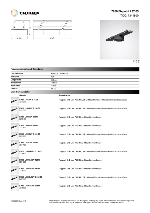 Element systemu szynowego wysokonapięciowego Trilux 7650 Fixpoint L37 05 7341800, czarny