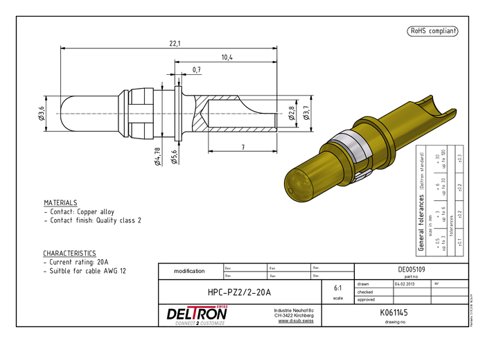 Deltron Connectors Deltron HPC-PZ2/2-20A Styki żeńskie wysokoprądowe 1 szt.