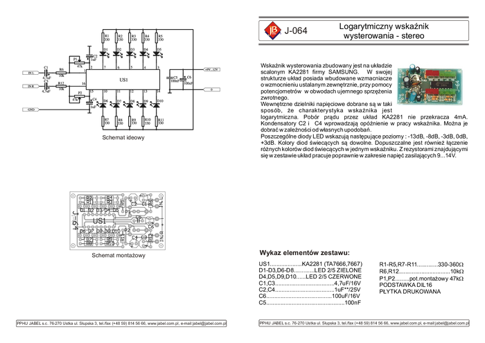 J-064 Logarytmiczny wskaźnik wysterowania stereo - zestaw do montażu