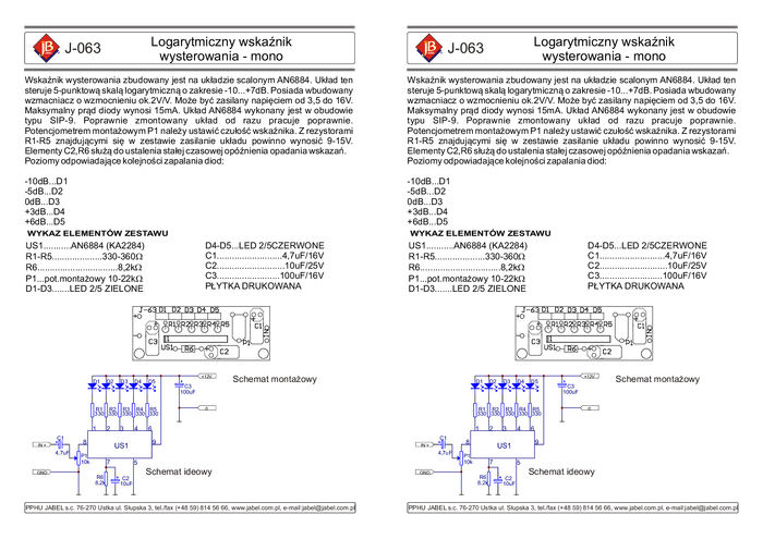 J-063 Logarytmiczny wskaźnik wysterowania mono - zestaw do montażu