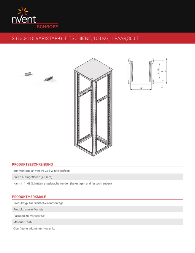 nVent SCHROFF 23130116 Wytrzymała szyna ślizgowa 1 szt.
