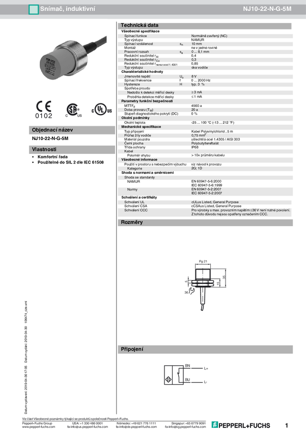 Pepperl+Fuchs Czujnik indukcyjny NAMUR NJ10-22-N-G-5M x2xG1xxD